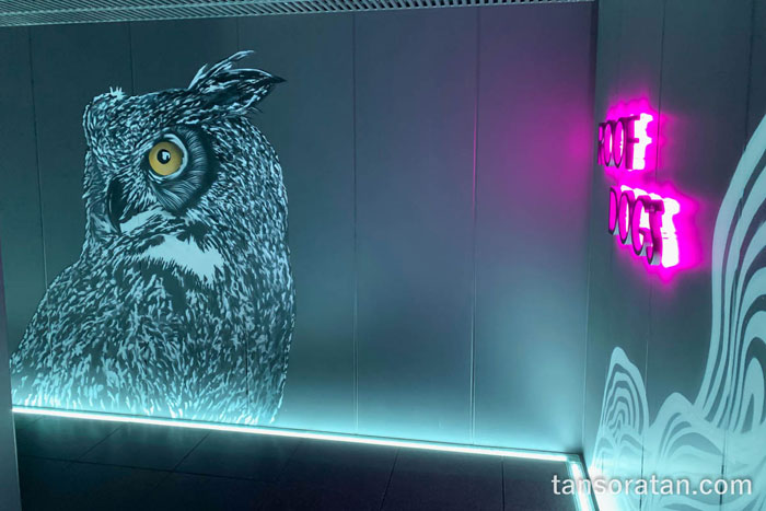 外からエレベーター方向を向くと「Roof Dogs」のロゴがおしゃれに撮影できるポイントで皆さん撮影されてました。