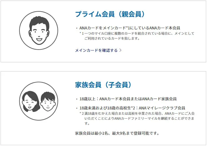 ANAファミリーマイル条件②18歳以上はANAカード必須