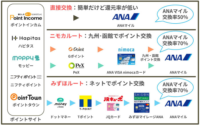 交換する方法(ルート)次第で、還元率が大きく変わっていきます。