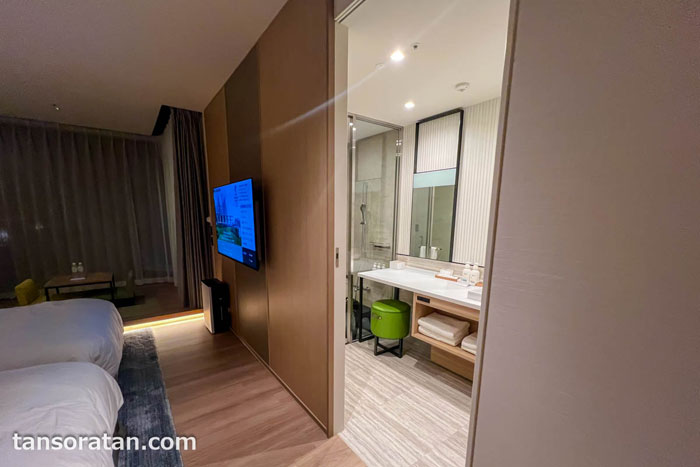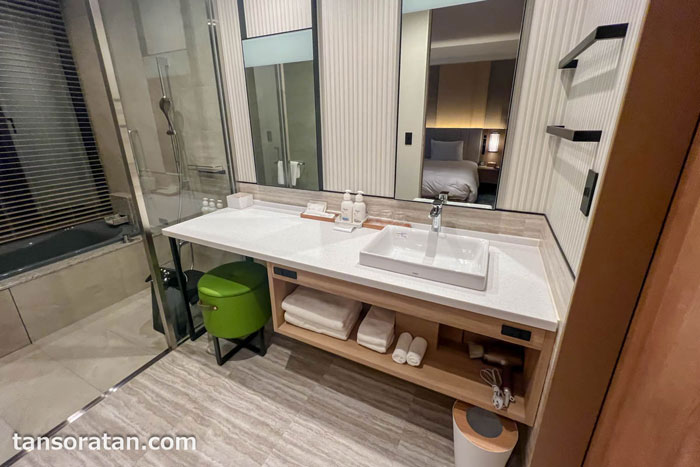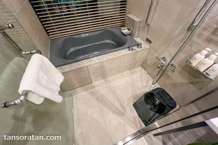 バスルームはガラス扉で仕切られた完全独立型のバスルーム