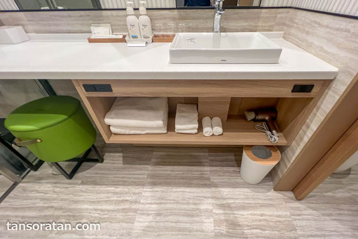 旅先で感じる小さな不便をすべて解消してくれるような、“使いやすさもデザインの一部”にした客室設計が光る一角です。