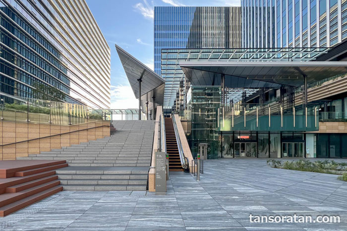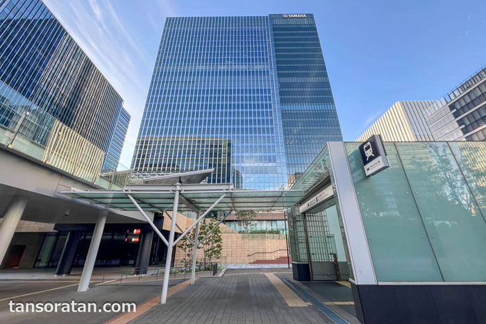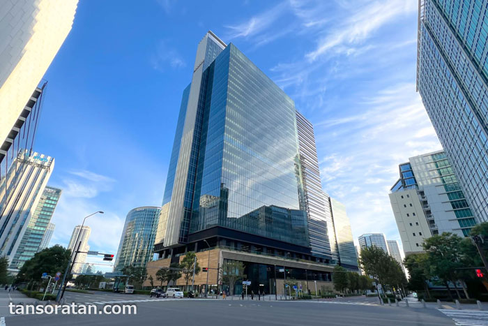 新高島駅からの遊歩道を抜けると、ガラス張りのモダンな建物が目の前に。