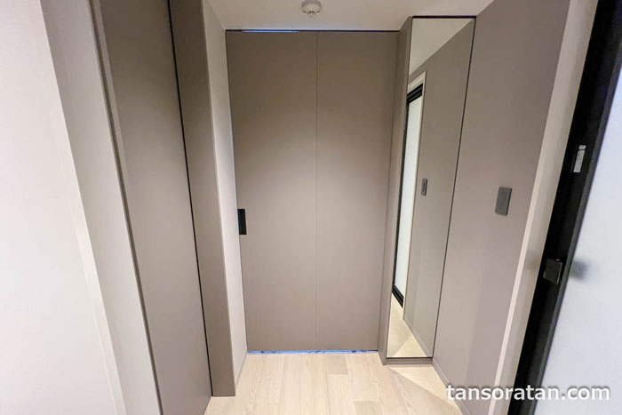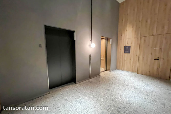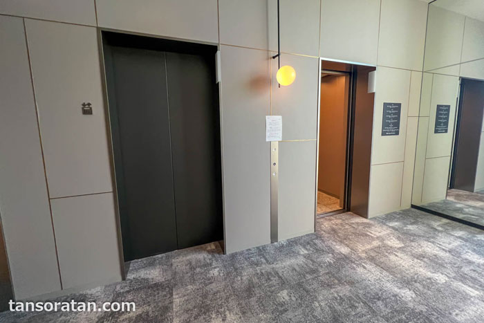 突き当たりには、ロビー階へ向かうエレベーターが2基並んでいます。