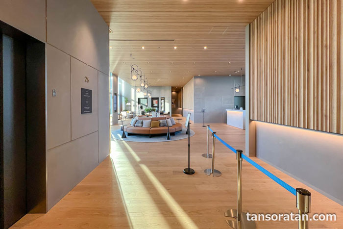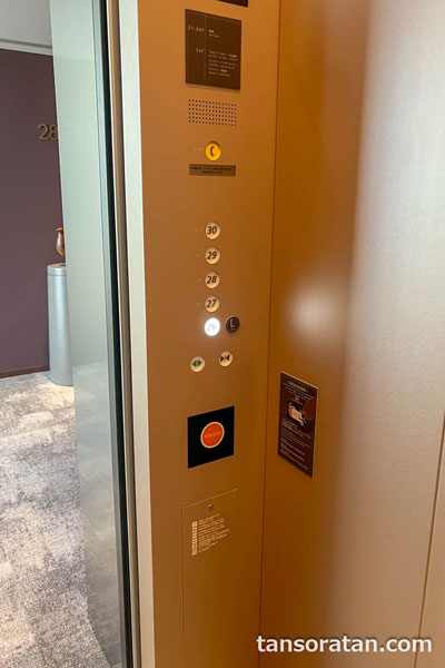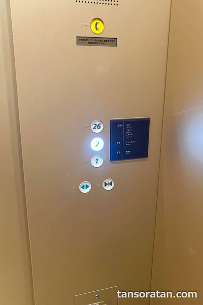 このエレベーターは、1階(車寄せ)・2階(エントランス)・26階(ロビー)を結ぶ専用ルート。