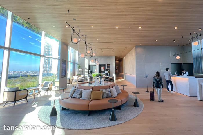 それまでのスタイリッシュで静かな雰囲気から一転、柔らかな自然光と木の温もりに包まれたロビーが出迎えてくれるのです。