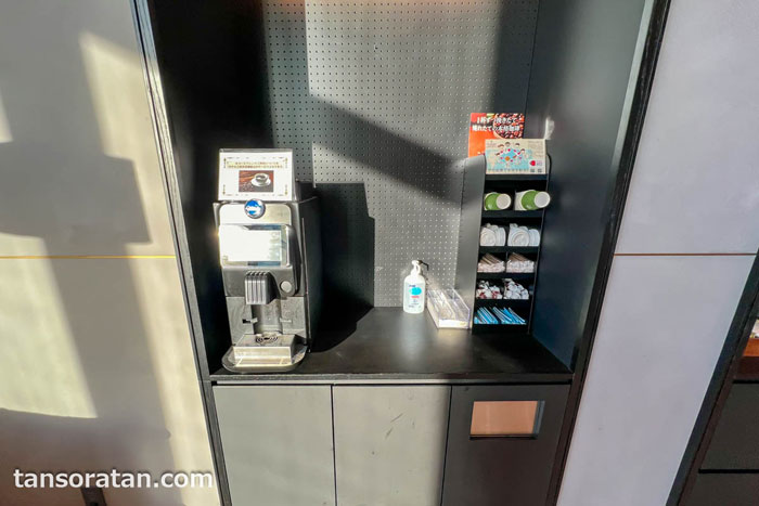 さらに、ロビーには無料のコーヒー&お茶コーナーがあり、好きなときにセルフで持ち帰りOK。