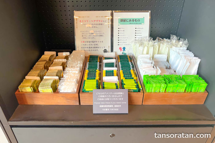 お茶やアメニティもこのロビーで自由にピックアップ可能。