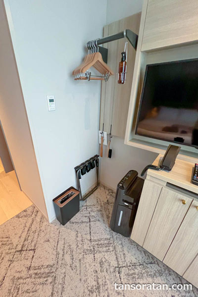 一見コンパクトですが、ハンガーがたっぷり用意されていて、翌日の洋服やアウターを掛けるには十分なスペースです。