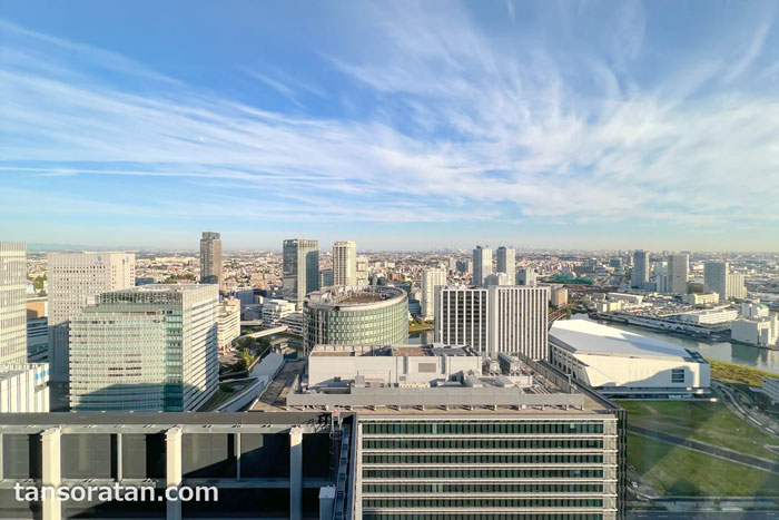 チェックインカウンターが広がり、眼下にはみなとみらいのパノラマビュー!