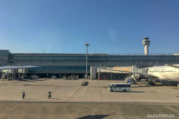 ターミナルに到着。バス停から飛行機を眺めることはできません(笑)