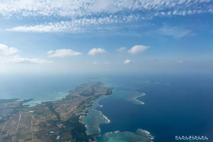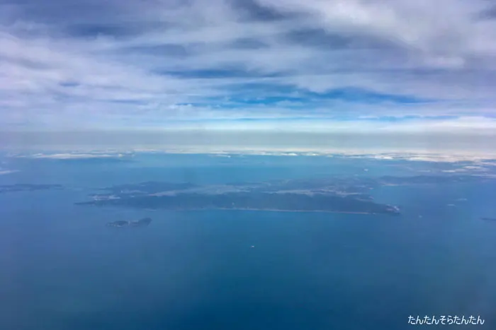 羽田なら大島手前ぐらいでシートベルト着用サインが点灯しますが、成田の場合は大島過ぎてからと少しのんびりした印象です。