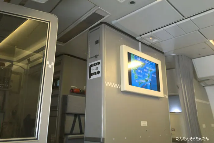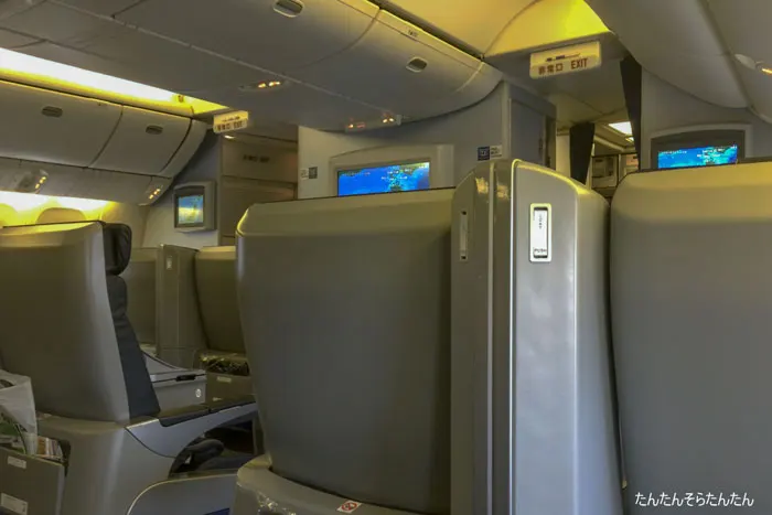 今回のプレミアクラスのシートは旧型シートでした。配列は横が2-1-2の縦2列です。
